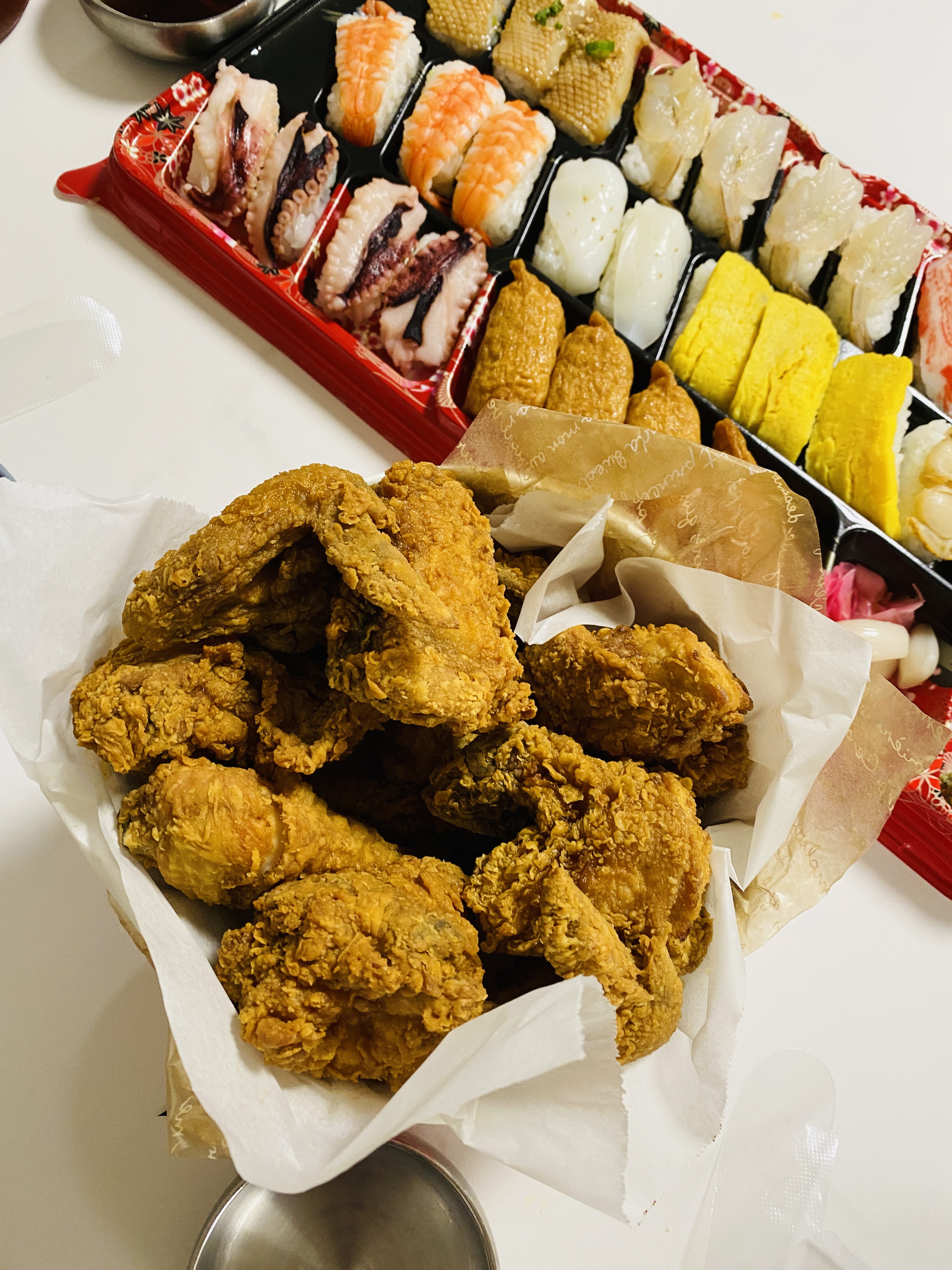 초밥은 아이들이 좋아하는 종류로 골라서 맛있게 먹었습니다.